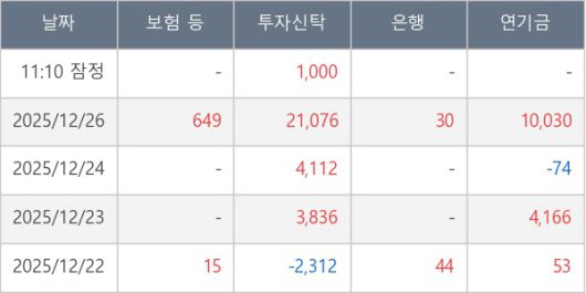 [표] 주요 기관별 순매매량 (단위 주)