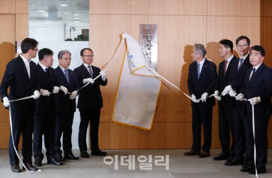 [이데일리 김태형 기자] 강호동(오른쪽 네번째) 농협중앙회장이 29일 서울 중구 농협 본관에서 제4회 동시조합장선거사무국 현판식을 하고 있다.