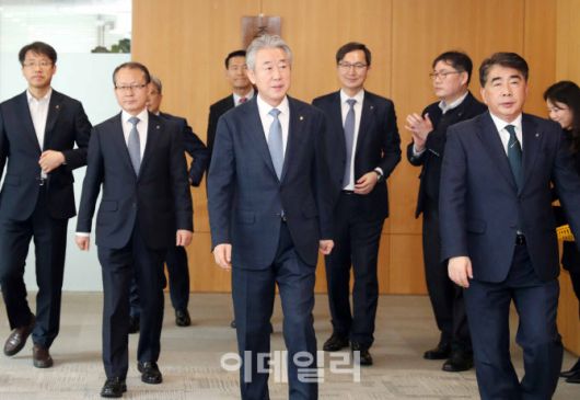 [이데일리 김태형 기자] 강호동(가운데) 농협중앙회장이 29일 서울 중구 농협 본관에서 열린 제4회 동시조합장선거사무국 현판식을 마치고 이동하고 있다.