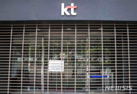 [서울=뉴시스] 박민석 기자 = 서울 종로구 KT 웨스트 사옥 출입문의 셔터가 내려가 있다. 2020.07.05. mspark@newsis.com |