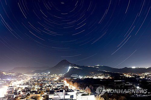 지난 18일 청와대 일대 별의 일주를 30초 단위로, 148장 촬영해 한 화면에 표현했습니다. 2025.12.29