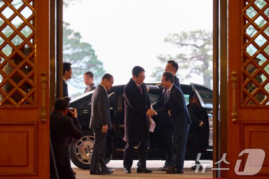 (서울=뉴스1) 이재명 기자 = 이재명 대통령이 청와대 공식 근무를 시작한 29일 청와대 본관에 도착해 차에서 내려 김용범 정책실장과 인사하고 있다. (청와대 제공. 재판매 및 DB 금지) 2025.12.29/뉴스12expulsion@news1.krCopyright ⓒ 뉴스1. All rights reserved. 무단 전재 및 재배포, AI학습 이용 금지.