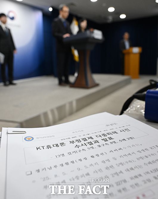 [더팩트ㅣ박헌우 기자] 이정수 경기남부경찰청 사이버수사과장이 29일 오후 서울 종로구 정부서울청사에서 KT 침해사고 조사 결과를 발표하고 있다.