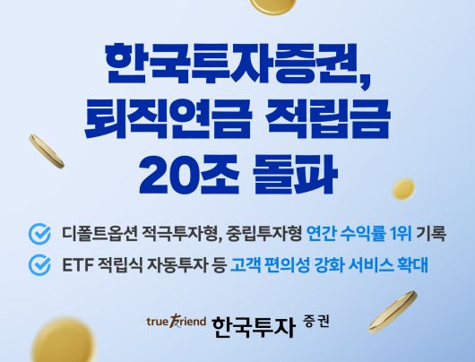 한국투자증권은 퇴직연금 적립금이 20조900억 원으로 지난해 말(15조8148억 원) 대비 27% 증가했다고 29일 밝혔다. 가입자가 직접 운용하는 확정기여형(DC)은 37%, 개인형퇴직연금(IRP) 적립금은 59% 증가했다. 올해 퇴직연금 실물이전 제도 시행후 계약이전으로 약 1조 원 가량의 자금이 유입됐다. 한국투자증권은 상장지수펀드(ETF) 930여 개 등 다양한 투자 상품 라인업을 갖추고 있다고 설명했다.