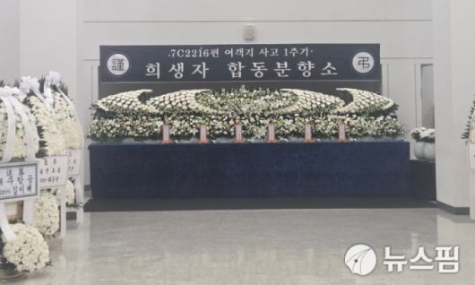 1주기인 이날 김포공항 분향소를 방문한 승무원들은 하나같이 침통한 표정이었다. 제주항공 유니폼을 입은 이들이 가장 많이 찾아왔다. 이들은 게시판에 적힌 글을 한참 서서 읽고 분향소를 한 바퀴 돌고 나서 국화꽃 6송이를 헌화하고 말없이 위패들을 바라봤다.
