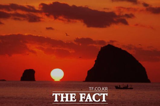 울릉군 북면 해상 공암주변의 일몰 모습. / 조병양 전 동해해양경찰서 울릉파출소장 |