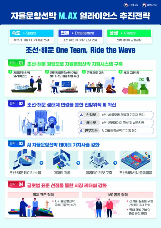 해양수산부와 산업통상부는 공동으로 29일 오후 4시 서울 롯데호텔에서 '자율운항선박 M.AX 얼라이언스 전략회의'를 개최했다.