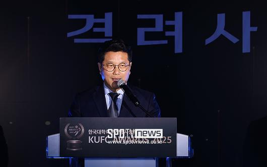 한국대학축구연맹 시상식(KUFC AWARDS 2025)은 29일 아주대학교 율곡관 영상홀에서 개최됐다. 이날 행사에는 박한동 한국대학축구연맹 회장을 비롯해 김승희 전무이사, 최근 수원삼성 감독으로 선임된 이정효 감독 등이 참석해 자리를 빛냈다.