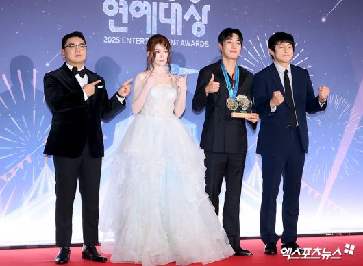 (엑스포츠뉴스 고아라 기자) 29일 오후 서울 마포구 상암동 MBC 미디어센터 공개홀에서 ‘2025 MBC 방송연예대상’이 열렸다. '극한84' 곽범, 츠키, 권화운, 기안84가 포토타임을 갖고 있다. 고아라 기자 iknow@xportsnews.com