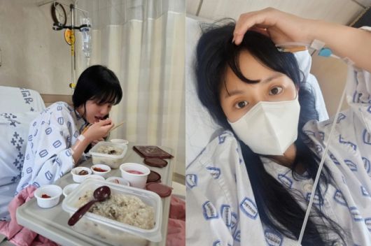 사진 속 환자복 차림 강은비는 한 손에 링거를 꽂은 채 병원 침대에 앉아 죽을 먹고 있다. 다소 야위고 퀭한 모습이 걱정을 불러일으킨다.