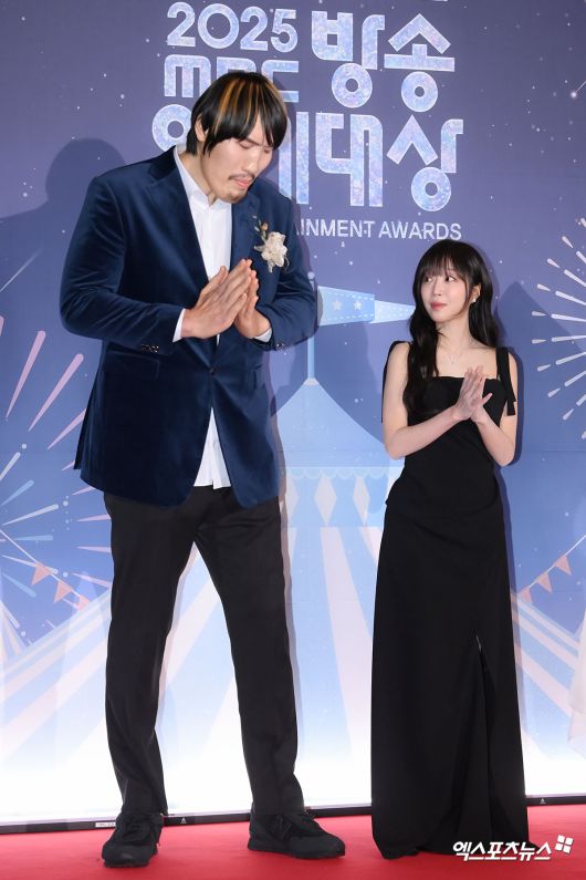 (엑스포츠뉴스 고아라 기자) 29일 오후 서울 마포구 상암동 MBC 미디어센터 공개홀에서 ‘2025 MBC 방송연예대상’이 열렸다. '전지적 참견 시점' 최홍만, 쯔양이 포토타임을 갖고 있다. 고아라 기자 iknow@xportsnews.com