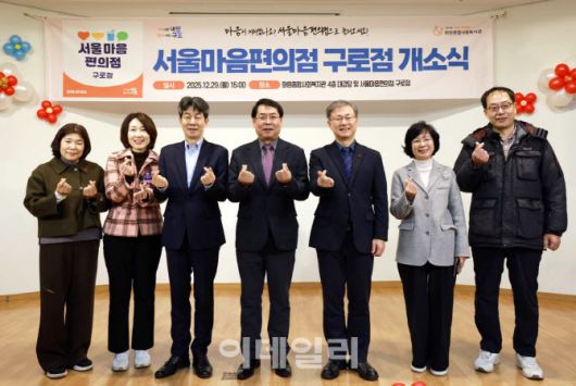 [이데일리 김태형 기자] 장인홍(오른쪽 세번째) 구로구청장이 29일 화원종합사회복지관에서 열린 ‘서울마음편의점 구로점’ 개소식에서 관계자들과 기념촬영을 하고 있다.