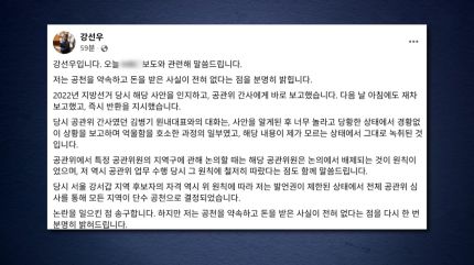 김경 서울시 의원도 SNS에 공천을 대가로 금품을 제공한 사실이 없다며, 2022년 지방선거 당시 당에서 정한 엄격한 심사 절차를 거쳐 공천을 받았다고 반박했습니다.