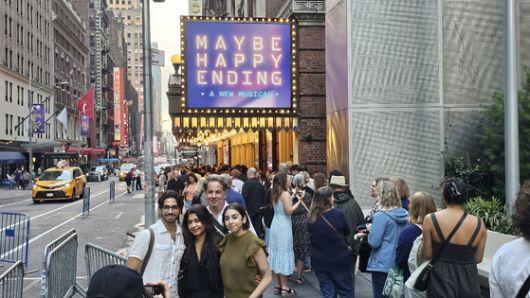 미국 뉴욕 브로드웨이 벨라스코 극장에서 ‘어쩌면 해피 엔딩’을 보기 위해 몰린 관객들 모습과 현지 공연 장면. 이 작품으로 박천휴 작가는 토니상 쾌거를 이뤘다. [중앙포토·뉴스1·AP=연합뉴스] |