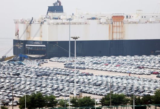 7일 오후 경기 평택시 포승읍 평택항에 수출용 차량들이 세워져 있는 모습. 2025.7.7 뉴스1 |