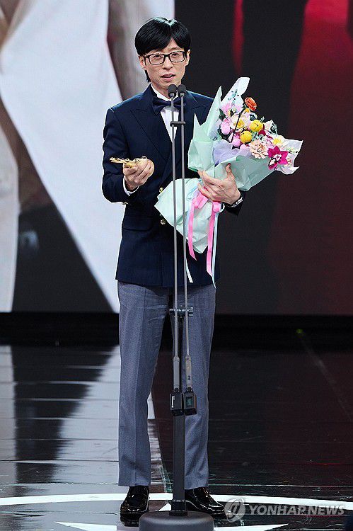 (서울=연합뉴스) 유재석이 30일 서울 마포구 MBC 미디어센터 공개홀에서 열린 2025 MBC 방송연예대상에서 대상을 받고 수상 소감을 말하고 있다. 2025.12.30 [MBC 제공. 재판매 및 DB 금지]