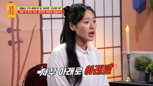 사연녀는 "이혼 후 재산 분할에서 아파트 분양권을 받았다. 청약에 당첨된 5억 원 상당의 아파트 대출을 갚아야 하는데 일자리를 계속 찾지 못하고 있다"며 한숨을 쉬었다.