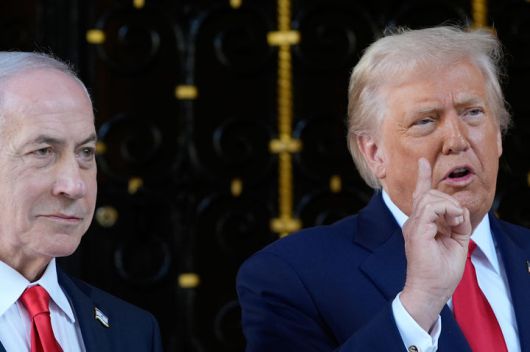 [팸비치=AP/뉴시스]도널드 트럼프 미국 대통령이 29일(현지 시간) 미 플로리다주 팸비치의 마러라고 자택에서 베냐민 네타냐후 이스라엘 총리와 회담에 앞서 취재진 질문에 답하고 있다. 2025.12.30. |