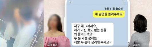 이후 A씨는 여성에게 "남편을 만나지 말라"고 여러 차례 문자 메시지를 보냈으나 답변은 없었다. 지난 9월 내용증명을 보내자 여성은 한 번만 봐달라며 연락을 해왔다고 한다.