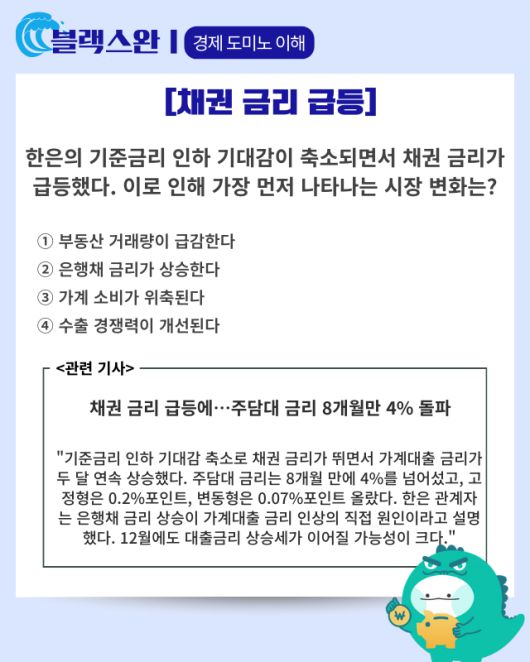 ▶ 기사 바로가기: 채권 금리 급등에···주담대 금리 8개월만 4% 돌파