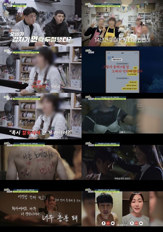 [OSEN=최이정 기자] 친구 일을 돕는다며 고향에 내려간 40대 남성을 찾는 의뢰가 예상밖 상황을 맞닥뜨리며 미궁에 빠졌다. 여기에 불륜을 들킨 남편과 그런 남편을 성적으로 학대한 아내의 기괴한 사연까지 공개돼 충격을 안겼다.