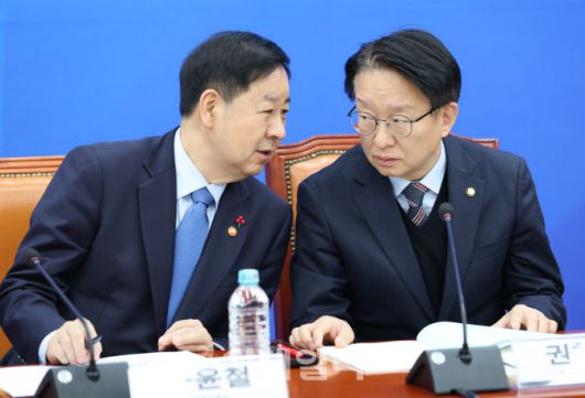[이데일리 노진환 기자] 경제형벌 민사책임 합리화 제2차 당정협의가 30일 서울 여의도 국회에서 열렸다. 권칠승(오른쪽) 민주당 경제형벌·민사책임 TF 단장과 구윤철 경제부총리 겸 기획재정부 장관이 대화하고 있다.