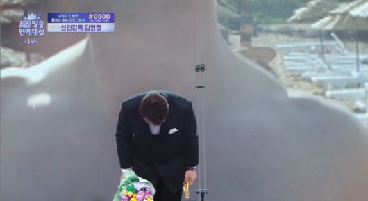 수상 소감을 위해 무대에 오른 전현무는 "오늘 진행하면서 축제의 분위기로 진행하고 있는데 사실은 진행하면서, 또 각종 연예대상에 많이 참석해 봤지만 이렇게 마음이 무겁게 송구스러운 마음으로 참석하는 건 처음인 것 같다"라고 조심스럽게 얘기했다.