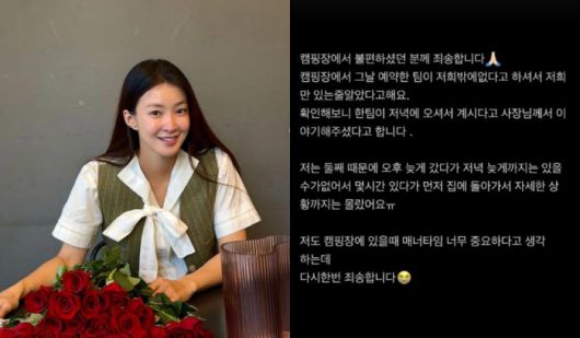 논란이 커지자 이시영은 SNS를 통해 사과문을 올렸다. 그는 "불편하셨던 분께 죄송하다"며 "그날 예약된 팀이 저희밖에 없다고 하셔서 자유롭게 캠핑했다"고 설명했다. 이어 "둘째 임신으로 오후 늦게 가 몇 시간 만에 먼저 돌아갔기에 자세한 상황은 몰랐다"며 "매너 타임이 중요하다는 걸 잘 알고 있다. 다시 한 번 죄송하다"고 강조했다.