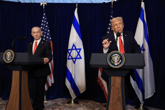 베냐민 네타냐후(왼쪽) 이스라엘 총리와 도널드 트럼프 미국 대통령이 29일(현지시간) 미국 플로리다주 마러라고 리조트에서 정상회담을 마친 뒤 공동 기자회견을 진행하고 있다. (사진=AFP) |
