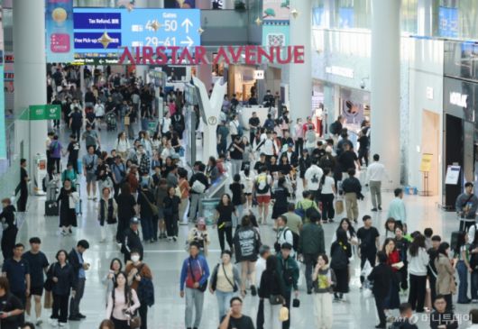 [인천공항=뉴시스] 김진아 기자 = 추석 황금연휴를 앞둔 1일 인천국제공항 1터미널이 여행객들로 북적이고 있다. 인천국제공항공사에 따르면 올해 추석 황금연휴 기간(2일~12일)에 인천공항을 오가는 여객은 245만3000명으로 예상했다. 2025.10.01. bluesoda@newsis.com /사진=김진아 |