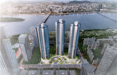 시는 여의도 금융중심지 환경에 어울리는 복합주거공간 조성에 중점을 두고 주거동은 저층부와 고층부의 평면을 달리해 입면과 평형을 다양하게 구성케 했다. 단지 저층부에는 업무 및 판매시설을 배치하고 공개 공지 및 개방형 커뮤니티시설을 조성해 금융중심지 인프라와 한강 생활권을 유기적으로 연결한다.