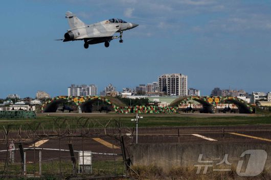 (신주 AFP=뉴스1) 양은하 기자 = 29일(현지시간) 중국 인민해방군 동부전구가 '정의의 임무-2025'(Justice Mission-2025)라는 대만 포위 군사훈련을 실시한다고 발표한 가운데 대만 신주 공군기지에서 대만 공군 미라주 2000 전투기가 이륙하고 있다. 2025. 12. 29. ⓒ AFP=뉴스1