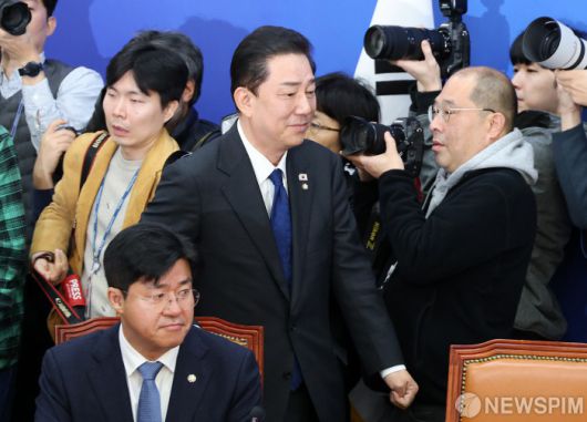 [서울=뉴스핌] 정일구 기자 = 원내대표직 사퇴 의사를 밝힌 김병기 더불어민주당 원내대표가 30일 오전 서울 여의도 국회에서 열린 원내대책회의에 참석하고 있다. 2025.12.30 mironj19@newspim.com