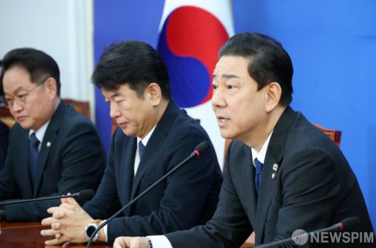 [서울=뉴스핌] 정일구 기자 = 김병기 더불어민주당 원내대표가 30일 오전 서울 여의도 국회에서 열린 원내대책회의에서 원내대표직 사퇴 의사를 밝히고 있다. 2025.12.30 mironj19@newspim.com
