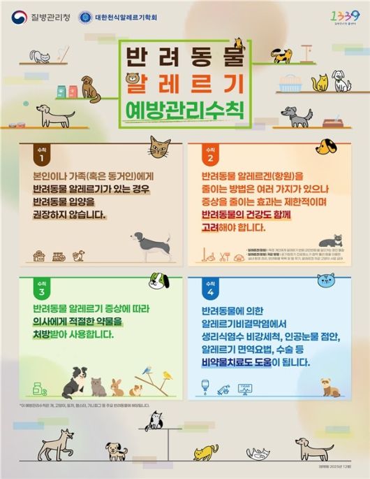 반려동물 알레르기 예방관리수칙의 구체적인 내용은 질병청 누리집과 국가건강정보포털에서 확인할 수 있다.
