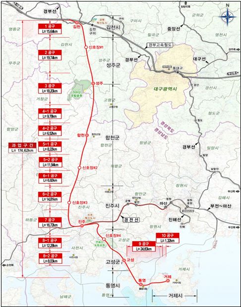 ‘남부내륙철도(김천~거제) 건설사업 제8-1공구’는 경북 김천에서 경남 거제까지 총 연장 174.6㎞, 총사업비 7조 974억 원이 투입되는 대규모 고속철도 건설사업이다. 두산건설은 전날 수주한 이번 사업에서 경남 고성군 일원을 통과하는 구간의 시공을 맡는다. 해당 노선은 설계속도 250㎞/h의 고속철도로, 전 구간 개통 시 서울~거제 이동 시간이 약 2시간 30분대로 단축돼 남부권 철도 교통망 확충과 지역 균형발전에 기여할 것으로 기대된다.