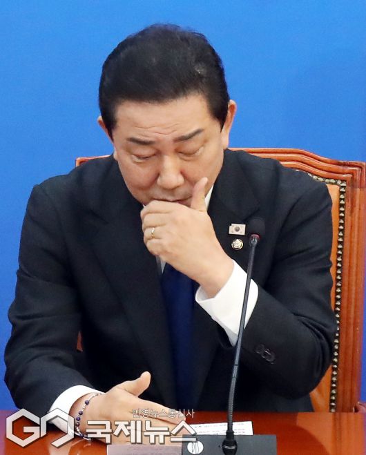(서울=국제뉴스) 김병기 더불어민주당 원내대표가 30일 서울 여의도 국회에서 기자회견을 열고 원내대표직 사퇴의사를 밝히고 있다./사진=이용우 기자