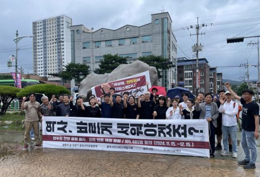 광주와 합천 시민들은 2024년 12월 일해공원 표지석 가림 퍼포먼스를 시작으로 단식 농성, 서명운동, 합천군 항의 방문 등을 함께 했다. 지난해 11월에는 합천군민운동본부는 국회에 ‘일해공원 명칭 변경 및 전두환 잔재 청산 법률 제정’을 요구하는 국민동의청원을 제출했고 한 달 만에 국민 10만5685명이 참여하며 청원 요건(5만명)을 충족했다. 하지만 국회 행정안전위원회에서 청원 심사가 장기간 표류하고 있다.