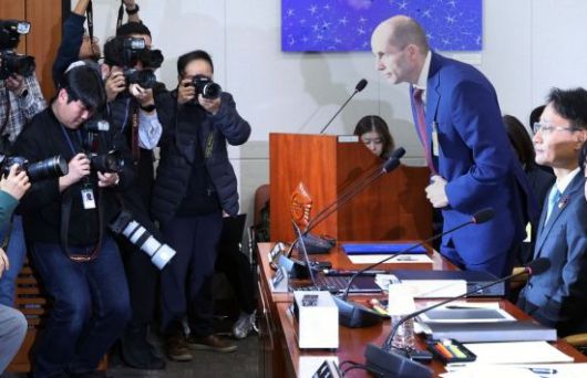 30일 국회에서 열린 '쿠팡 침해사고 및 개인정보 유출, 불공정 거래, 노동환경 실태 파악과 재발방지 대책 마련을 위한 청문회'에서 해롤드 로저스 쿠팡 대표가 의원들에게 인사하고 있다. <ⓒ투자가를 위한 경제콘텐츠 플랫폼, 아시아경제(www.asiae.co.kr) 무단전재 배포금지>
