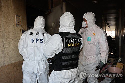 (울산=연합뉴스) 장지현 기자 = 30일 오전 울산 남구의 한 아파트 화재 현장에서 원인 조사를 위한 국립과학수사연구원, 경찰, 소방 당국의 합동 감식이 이뤄지고 있다. 이 아파트에서는 지난 28일 불이 나 저장강박 증세를 보이던 70대 월남전 참전용사가 숨졌다. 2025.12.30