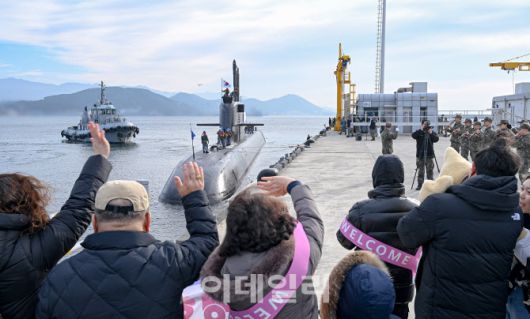 해군은 30일 진해군항에서 김태훈 해군잠수함사령관 직무대리 주관으로 한미 연합대잠훈련 ‘2025 사일런트 샤크(Silent Shark)’ 훈련을 마치고 복귀한 안무함 입항 환영식을 진행했다. 이날 행사에는 잠수함사령부 장병 및 안무함 승조원 가족들이 참석해 첫 해외훈련 임무를 성공적으로 완수한 안무함 입항을 축하했다.