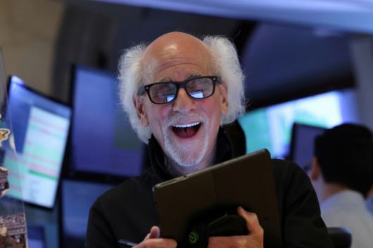 지난 6월23일(현지시간) 뉴욕증권거래소(NYSE)에서 트레이더가 환하게 웃으며 일하고 있다. /로이터=뉴스1 |