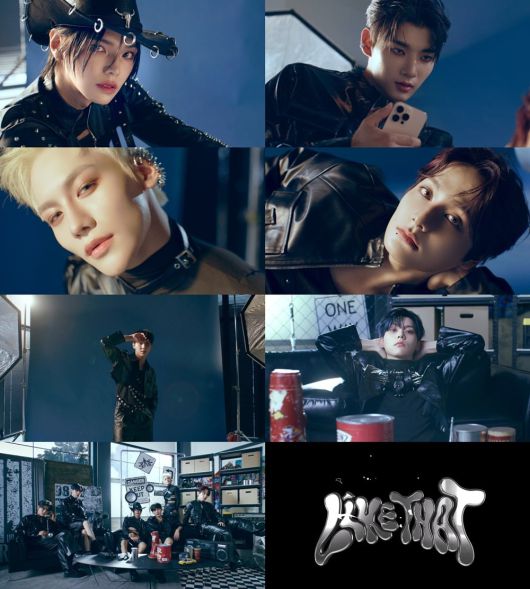 심박수가 124bpm까지 치솟는 스마트워치 화면으로 시작해 사랑에 빠진 설렘과 긴장감을 시각적으로 표현했다. 이어 멤버들은 앞서 공개된 'FREEZE LiKE THAT'(프리즈 라이크 댓) 버전의 올 블랙 가죽 의상을 입고 등장해 탄탄한 피지컬과 함께 치명적인 매력을 발산하며 시선을 사로잡았다.
