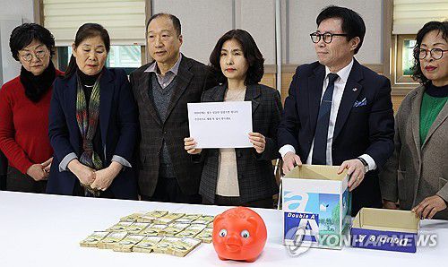 (전주=연합뉴스) 김동철 기자 = 전북 전주의 '얼굴 없는 천사'가 올해도 어김없이 성금을 놓고 사라졌다. 천사가 성금을 두고 간 30일 오후 전주시 노송동주민센터에서 직원 등이 성금을 세고 있다. 2025.12.30