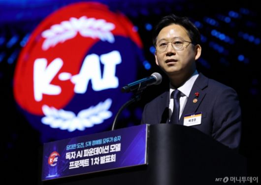 배경훈 부총리 겸 과학기술정보통신부 장관이 30일 오후 서울 강남구 코엑스에서 열린 독자 AI 파운데이션 모델 프로젝트 1차 발표회에 참석해 축사를 하고 있다. /사진=뉴시스 /사진=이영환 |