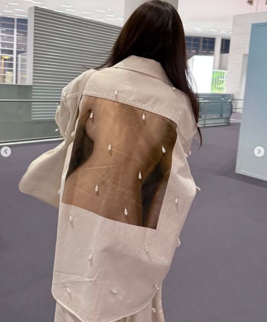 사진에서 효민은 마치 상의를 탈의한 것 같은 착시 패션을 선보이고 있어 눈길을 끈다. 올 누드 뒤태 그림과 어깨선이 절묘하게 맞으면서 더욱 착시 효과를 불러일으켰다.