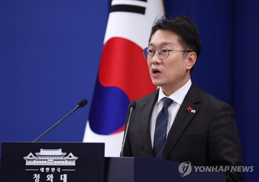 김남준 대변인이 지난 24일 청와대 춘추관에서 이재명 대통령과 김혜경 여사의 희귀 질환 환우·가족 현장 간담회 참석 관련 브리핑을 하고 있다. 〈사진=연합뉴스〉 |