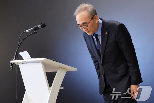 김영섭 KT 대표가 30일 오후 서울 종로구 KT광화문빌딩에서 열린 정보보안 혁신방안 기자브리핑에서 침해사고와 관련해 고개 숙여 사과하고 있다. 2025.12.30/뉴스1 ⓒ News1 김진환 기자