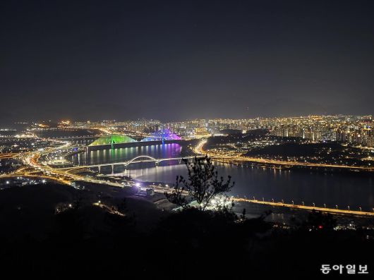 가로등은 오렌지빛을 뿜어내고, 동부간선도로에 늘어선 자동차의 후미등이 빨갛게 빛난다. 곳곳에 점멸하는 전광판의 광고도 선명하다. 미국 LA그리피스 천문대에서 바라봤던 로스앤젤레스의 별빛 야경보다 더 드라마틱한 서울의 밤풍경이다.
