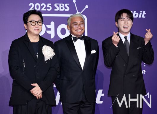 (MHN 이지숙 기자) '마이턴' 탁재훈, 추성훈, 김원훈이 30일 오후 서울 마포구 상암동 SBS 프리즘타워에서 열린 '2025 SBS 연예대상'에 참석해 포즈를 취하고 있다. 한편, '2025 SBS 연예대상'은 전현무, 차태현, 이수지 3MC로 진행된다. <저작권자 Copyright ⓒ MHN / 엠에이치앤 무단전재 및 재배포 금지>